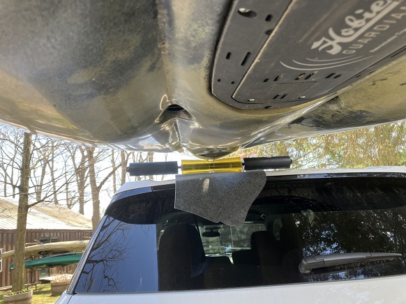 Our "V" shape of our standard Gull Wing kayak saddle fits most 12' to 17' one person kayaks with sleeker hull shapes, or where crossbars are far apart.