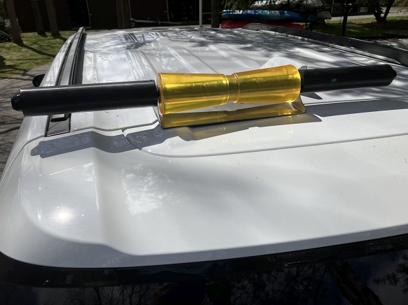 SUV, Minivans and Crossover vehicles; roller sticks to Rear of roof, Roll your kayak forward onto the rack.